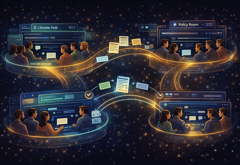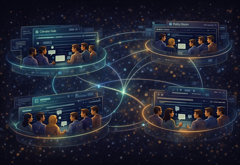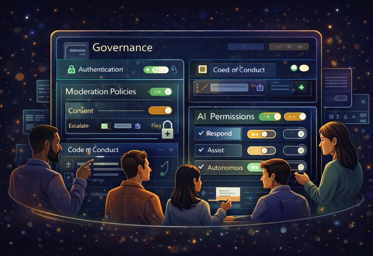 Rather than hiding AI inside platforms, Canopi places AI inside community-governed environments, where interaction rules are transparent and adjustable.